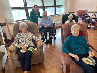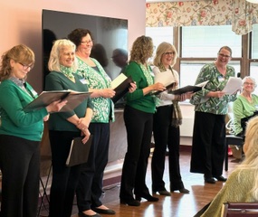 A spirit of friendship and music filled the room as Friends in Harmony performed a lively Spring concert for Saturdays with the Sisters. The group—made up of eight longtime friends who share a love of singing—entertained the Daughters with a program that celebrated the season while adding a cheerful nod to St. Patrick’s Day.